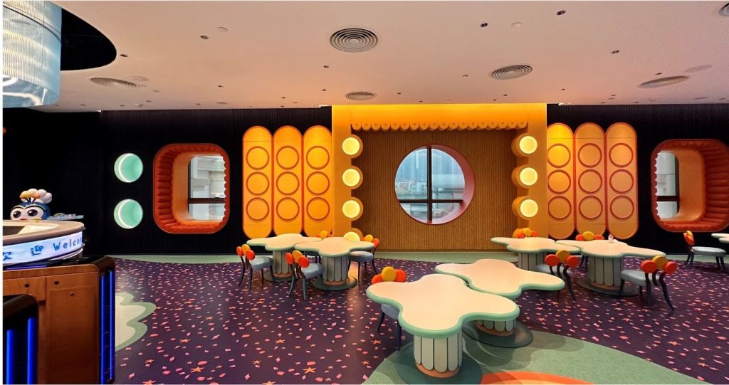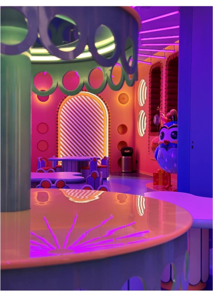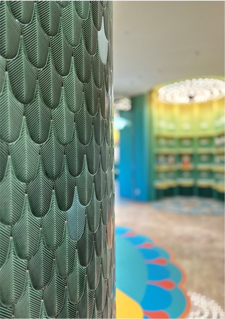 Colourful Edutainment Centre inspired by their mascot, Wavey the peacock Within the Galaxy Integrated Resort in Macau, the Galaxy Kidz is an edutainment centre designed for children, featuring a range of unique facilities and engaging activities. Accompanied by their parents, children can explore nature and science through play, embodying Galaxy Kidz’s commitment to delivering both entertainment and educational experiences to life. A Whimsical Space Design Inspired by Wavey the Peacock The mascot, “Wavey the Peacock,” welcomes all young guests staying at the hotel, bringing to life the spirit of Galaxy Kidz. This lively little peacock inspired the entire edutainment centre’s design. The design team from Groundwork Architects, led by Manfred Yuen, boldly brings “Wavey the Peacock” inspiration to life through the space’s design using vibrant colours, dynamic lines, and captivating lighting to create an imaginative wonderland for young guests. The presence of “dopamine colors” in the surrounding environment creates an immersive experience for children, amplifying their sensory engagement. These vibrant and cheerful hues stimulate their senses, evoking a feeling of playfulness akin to being in a paradise where their creativity flourishes, often accompanied by delightful exclamations of “Wow!” The dynamic interplay of vibrant, high-saturation colors harmoniously blends together, forming a playful symphony of visual delight. Complementing this colorful tapestry, the incorporation of abundant peacock patterns and elements infuses the space with a sense of confidence and vibrancy.